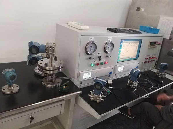 3.給流量計按由低到高(上行程)測量點加壓,再由高到底(下行程)測量點加壓,記錄電壓(電流)值。