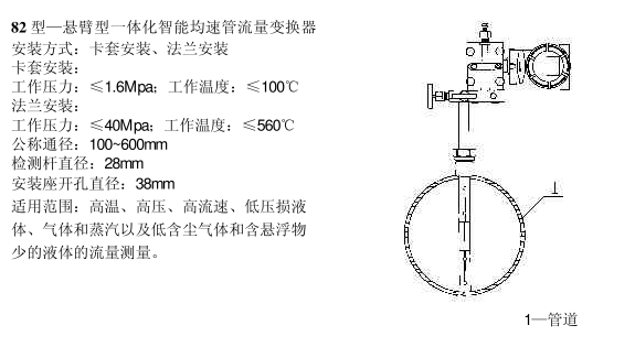 84 型高強(qiáng)度懸臂型一體化智能均速管流量變換器
