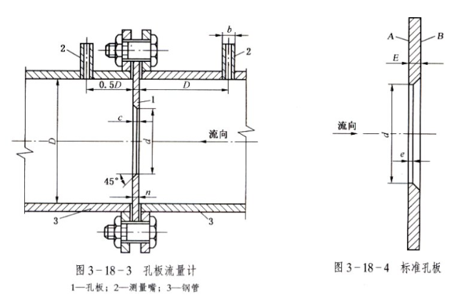孔板流量計(jì)有孔板、 取壓嘴和鋼管組成, 安裝過(guò)程中, 應(yīng)注意孔板的安裝方向, 具體如圖所示。