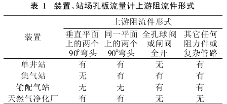 孔板流量計(jì)上游阻流件形式,見(jiàn)表1。
