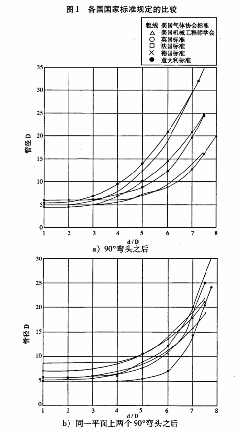 美國氣體協(xié)會(huì)(AGA)3號(hào)報(bào)告參考文獻(xiàn)記錄了美國流量工作者1926年在天然氣輸氣站上對(duì)孔板流量計(jì)進(jìn)行過阻流件干擾試驗(yàn),自此以后人們不問斷地進(jìn)行大量的試驗(yàn)研究,在國際標(biāo)準(zhǔn)ISO5167第一版(1980)頒布之前,美國和歐洲各國國家標(biāo)準(zhǔn)或行業(yè)標(biāo)準(zhǔn)皆把節(jié)流裝置必要的直管段長度規(guī)定作為標(biāo)準(zhǔn)的主要內(nèi)容之一。國際標(biāo)準(zhǔn)化組織(ISO)制訂第一部節(jié)流裝置國際標(biāo)準(zhǔn)時(shí)把各國的成果引入標(biāo)準(zhǔn),期望直管段長度規(guī)定能在國際上取得一致,意料不到的是,做為國際標(biāo)準(zhǔn)主要起草國之一美國卻對(duì)ISO5167:1980投了反對(duì)票。在IS05167:1980(第一版)前言中寫道: