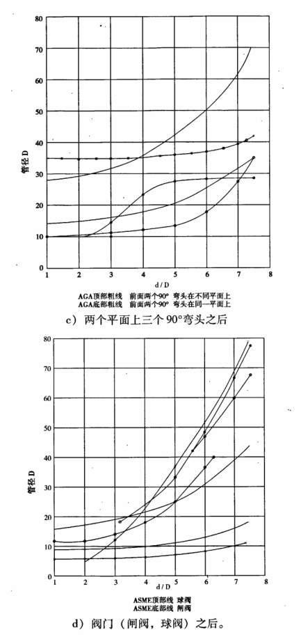 ?。常畵?jù)稱IS05167直管段長度的表列值是在阻流件上游安裝有很長直管段得到的,即阻流件上游的流動(dòng)已達(dá)到充分發(fā)展管流和無旋轉(zhuǎn)流,不同的研究者,他們遵守這個(gè)條件可能是不一致的。