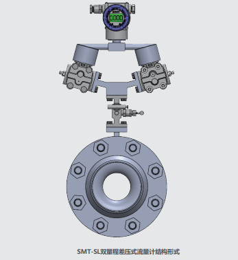 雙量程差壓式流量計(jì),對于一個節(jié)流裝置由于引入了一臺低量程差壓傳感器和一臺臺高量程差壓傳感器并能實(shí)現(xiàn)輸出的無縫銜接,使一臺差壓式流量計(jì)變成高、低量程二臺差壓式流量計(jì),從而大大提高了量程低段的流量測量精度。