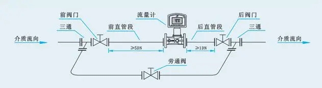 氣體渦輪流量計(jì)安裝要求常溫型、低溫型、高溫型流量計(jì)視不同工況采用水平、垂直或倒置式安裝;介質(zhì)工作溫度在300度以上時(shí),用戶(hù)應(yīng)對(duì)流量計(jì)殼體采取隔熱措施防止熱輻射損壞表頭,同理工作溫度零下一百度以下的介質(zhì),也要采取防凍措施;為保證流量計(jì)準(zhǔn)確計(jì)量,要求設(shè)置前后直管段;為保證流量計(jì)在檢查及更換時(shí)不影響系統(tǒng)工作,應(yīng)盡量設(shè)置旁通閥及切斷閥;因工藝需要可采用垂直安裝,被測(cè)介質(zhì)流向可由下至上,也可由上至下,但訂購(gòu)時(shí)應(yīng)向供貨方說(shuō)明;流量計(jì)口徑與相連的管道口徑尺寸盡量相同,以減少流動(dòng)干擾,造成計(jì)量誤差;法蘭式和夾裝式流量計(jì)安裝時(shí),應(yīng)注意法蘭之間密封墊片內(nèi)孔尺寸大于流量計(jì)和工藝管道通徑6-8mm及否同軸,以避免因其產(chǎn)生干擾流而影響計(jì)量精確度;