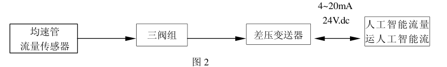 一體化智能型均速管流量計(jì)由一體化均速管流量變換器和人工智能流量運(yùn)算顯示器兩部分組成。其中一體化均速管流量變換器由均速管流量傳感器亦稱阿紐巴Annubar流量傳感器、三閥組板和差壓變送器構(gòu)成。測(cè)量原理框圖見(jiàn)圖 2。