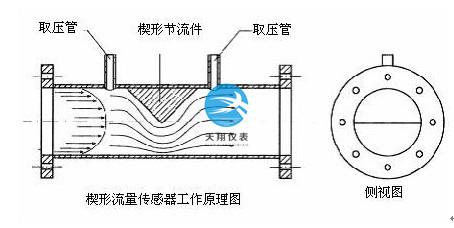 楔形流量計的檢測件采用特殊對稱的V形結構,利用兩臺變送器,可以實現(xiàn)用一臺流量計測量正向和反向的流量。